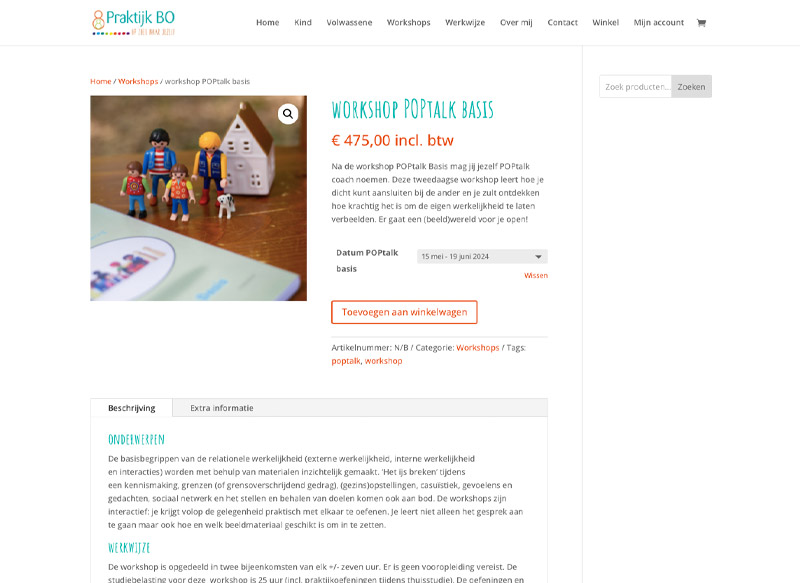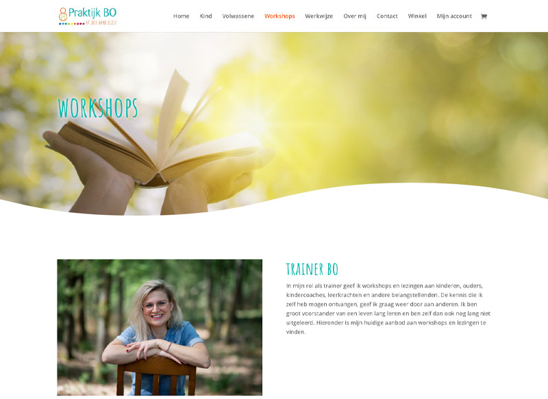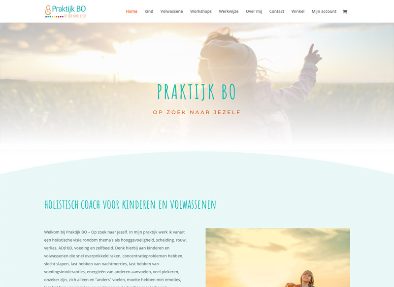 Bo is holistisch coach voor kinderen en volwassenen. Op haar website kunnen bezoekers producten kopen en online aanmelden + betalen voor diverse workshops.