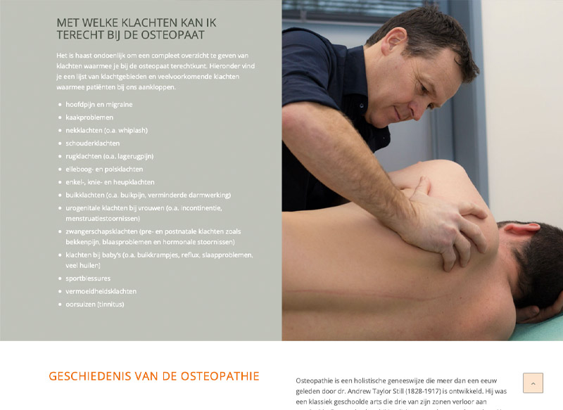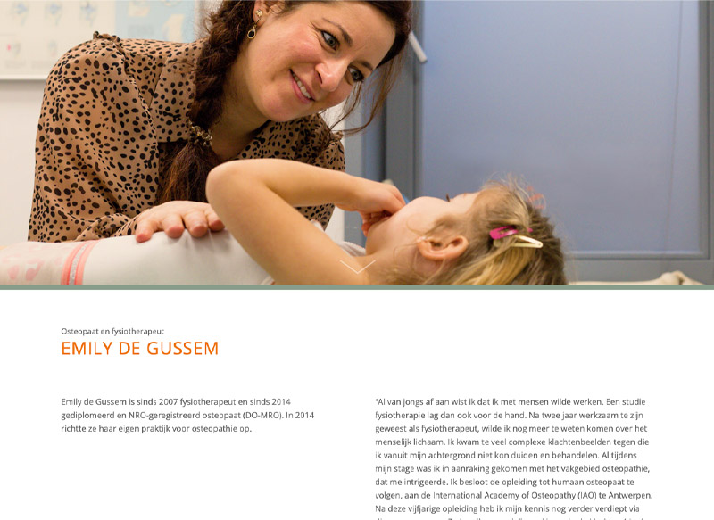 Op de website vertelt Emily wat osteopathie inhoudt en voor welke behandelingen je bij haar praktijk terecht kunt. De informatie is voorzien van prachtige foto’s.