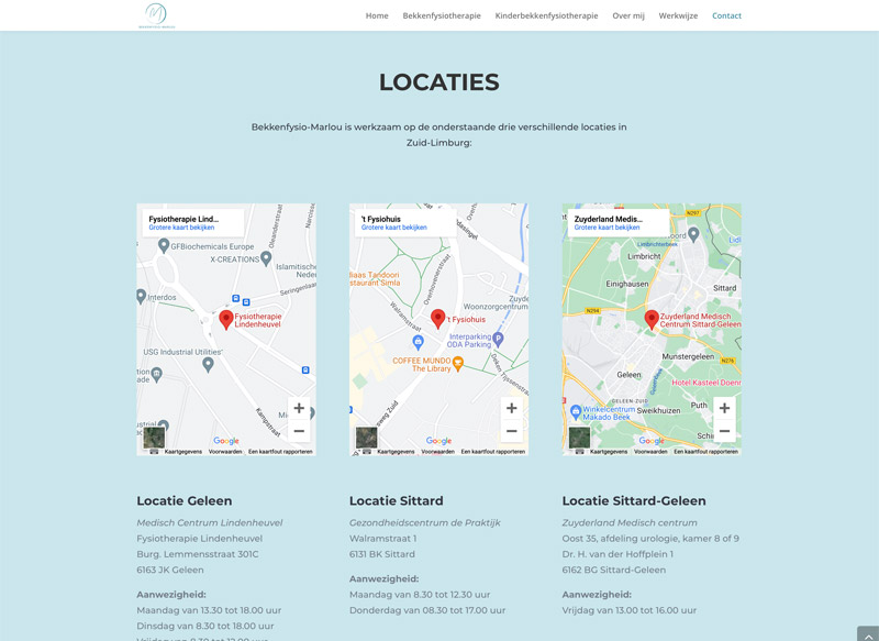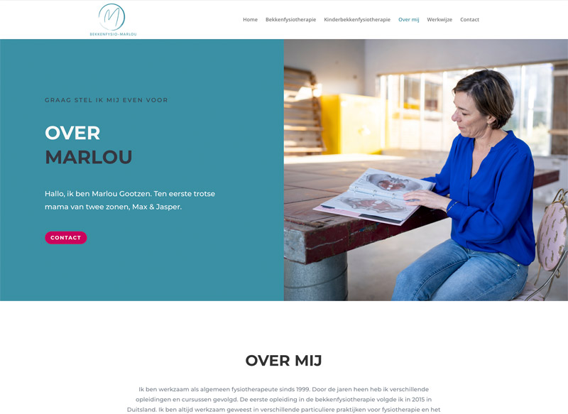 Marlou is bekkenfysiotherapeut voor kinderen en volwassenen. Op haar website kunnen bezoekers informatie vinden over bekkenfysiotherapie en contact opnemen.