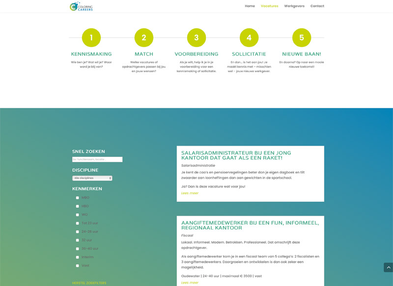 Saskia is recruiter. Op haar website kun je door middel van filters een baan vinden en direct solliciteren en je CV uploaden. Werkgevers kunnen via de site vacatures melden.