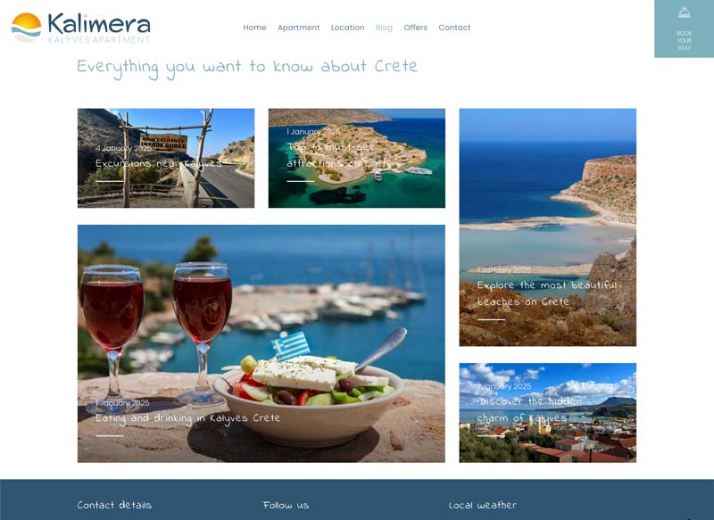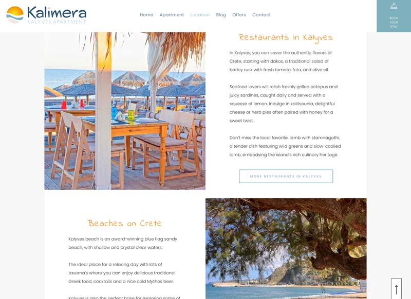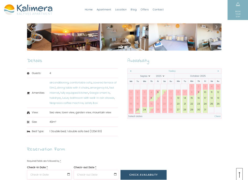 Kalimera Kalyves Appartement is een volledig gerenoveerd vakantieappartement. De website biedt gasten de mogelijkheid om direct te boeken en te bekijken wat het appartement en de omgeving te bieden hebben.