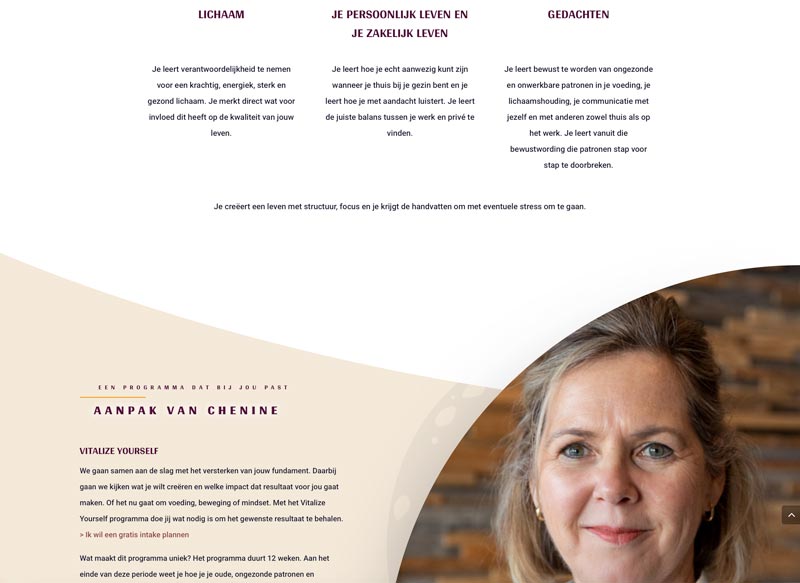 Chenine helpt je om energieker, fitter, gezonder en krachtiger te worden. Op haar website lees je hoe, maak je kennis met haar en kun je contact opnemen.