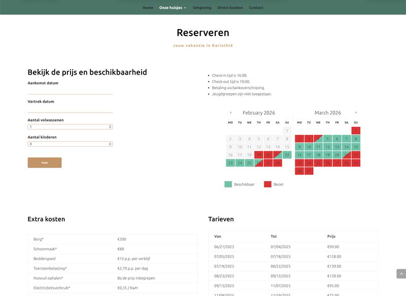 Website inclusief boekingsopties