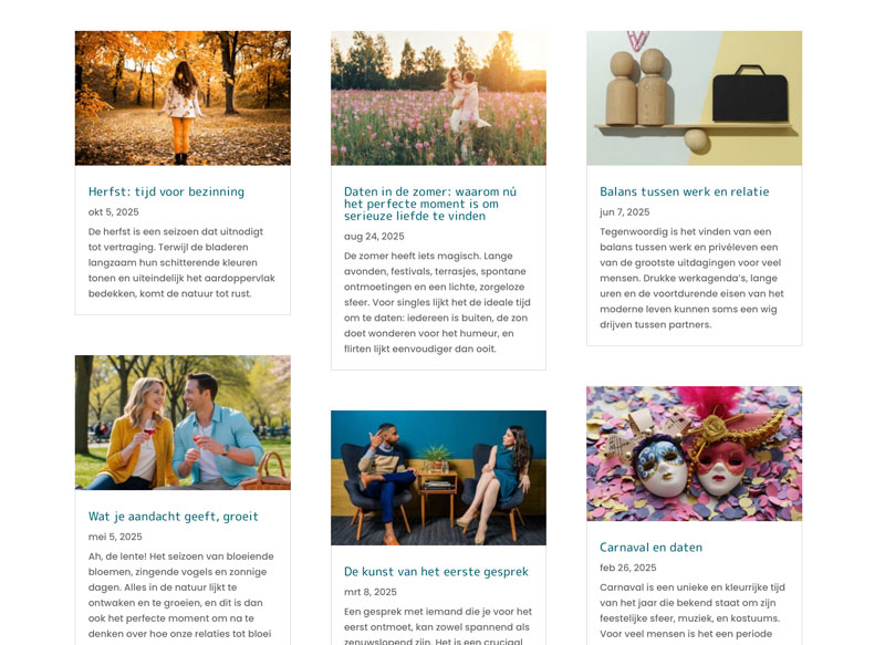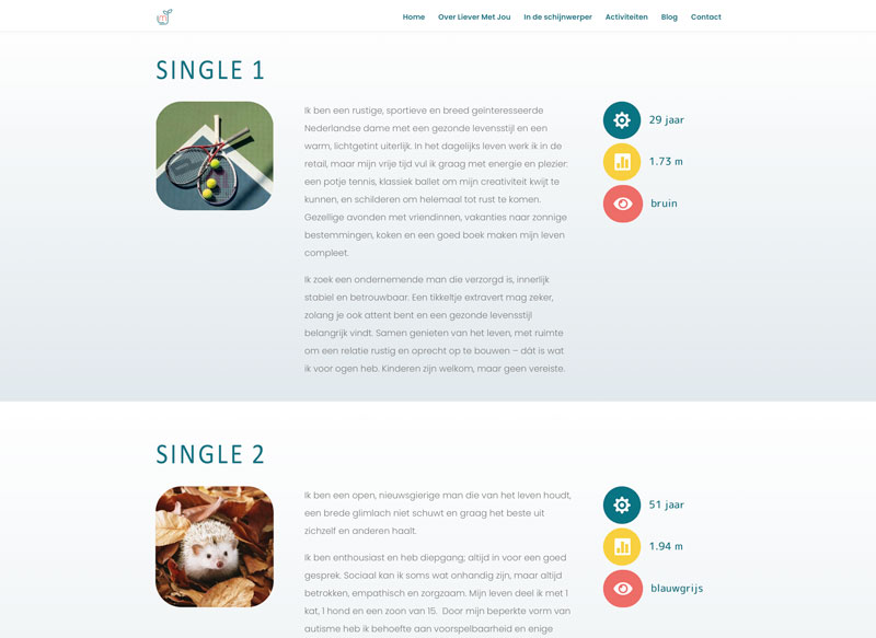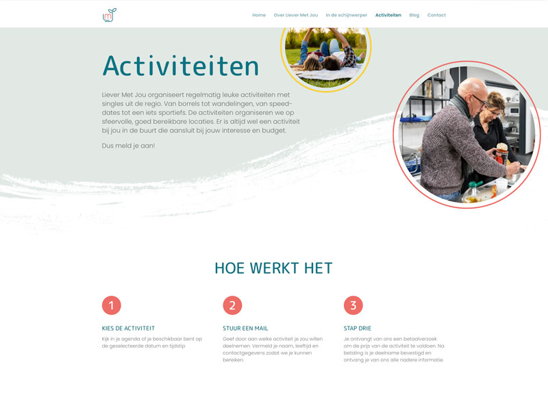 Op de website van relatiemakelaar Liever Met Jou kun je je inschrijven als je single bent, deelnemen aan activiteiten, alvast online kijken naar de singles in portfolio en uiteraard contact opnemen met relatiebemiddelaar Ellen.